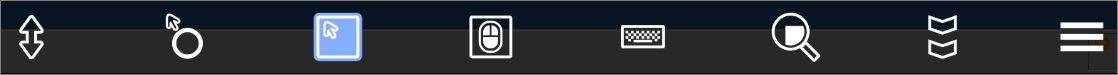 AccessToGo は、起動時にデバイスがタブレットであるかどうかを識別します。 AccessToGo の表示領域が 5.5 インチ以上あるデバイスはタブレットとして識別され、デフォルトでアクティブなセッションの上部にタブレット・ファンクション・バーが表示されます。5.5インチ以下の場合はスマートホンとみなされ、設定メニューで「上部バーの有効化」をオンにしている場合でも上部のファンクションバーは表示されません。