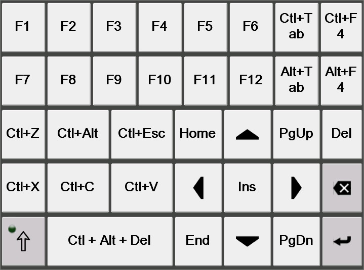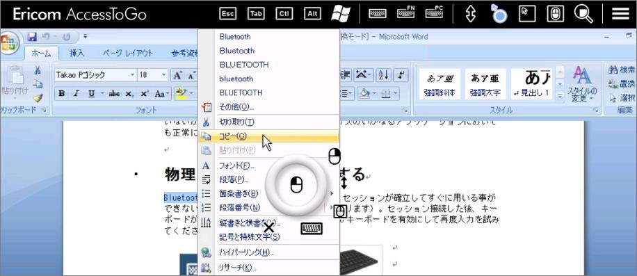 AccessToGo には、より強化されたキーボード機能が含まれています。 スクリーン上のキーボードを有効化している場合、以下の操作が利用可能です。