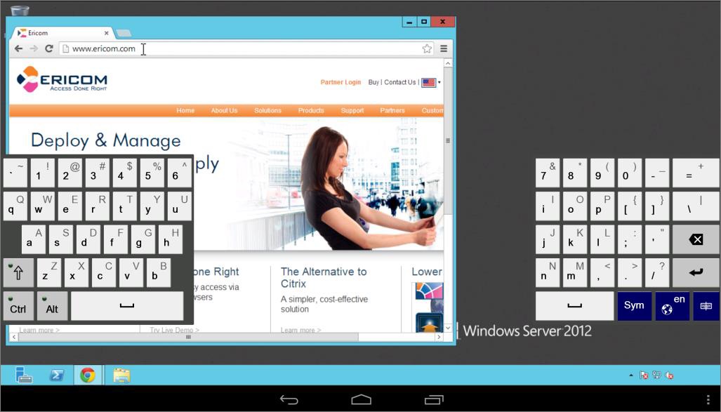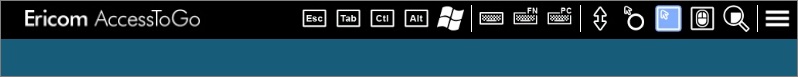 AccessToGo ツールバーは、セッションが確立された後に、デスクトップまたはアプリケーションの下部に表示されます。 Android ベースのデバイスでAccessToGo ツールバーを表示するには、デバイスのメニュー・ボタンを押します(通常は一番左側のボタンです)。接続時にツールバーを表示するには、設定に進み、「Always」をオンにします。