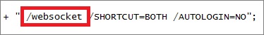 Websocket モードを有効にするには、Launch.asp または sgLaunch.asp ファイルにパラメータ /websocket を追加します: