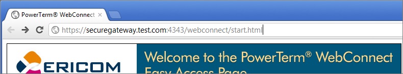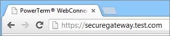 PowerTerm WebConnect 用に適切に Secure Gateway を設定すると、Secure Gateway の URL にユーザがダイレクトされます。ユーザは https://securegateway.test.com(または http)を入力します: