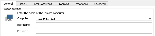 Blaze クライアントを起動し、詳細 タブに移動します。 「Connect using Ericom Secure Gateway」(Ericom Secure Gateway を使用して接続)をクリックし、Secure Gateway サーバのアドレスとポートを入力します(アドレス:ポート)。このアドレスは、Blaze クライアントから到達可能なものとする必要があります。