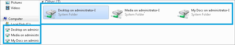 Windows セッションに Blaze Linux クライアントが接続されると、コンピュータの一覧にドライブが表示されます。