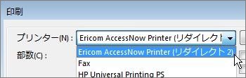 利用可能なプリンタとして AccessNow のプリンタが表示されない場合は、セッションにプリンタを追加する権限がユーザに付与されているかを確認してください。