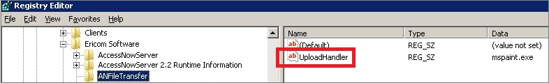 - HKEY_LOCAL_MACHINE\SOFTWARE\Ericom Software\ANFileTransfer, REG_SZ value UploadHandler