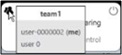 ステータス (Status) - Team アイコンの上にカーソルと置くと、既存のユーザ、チーム名、およびコントロール・ユーザを確認できます。