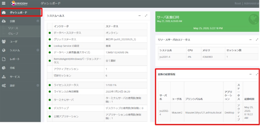 RemoteAgentレスホストへの接続履歴は、Connect管理コンソールのダッシュボード、もしくはレポートから確認できます。但し、RemoteAgentレスホストのセッション状態(ステータス)は正確ではない場合があります。