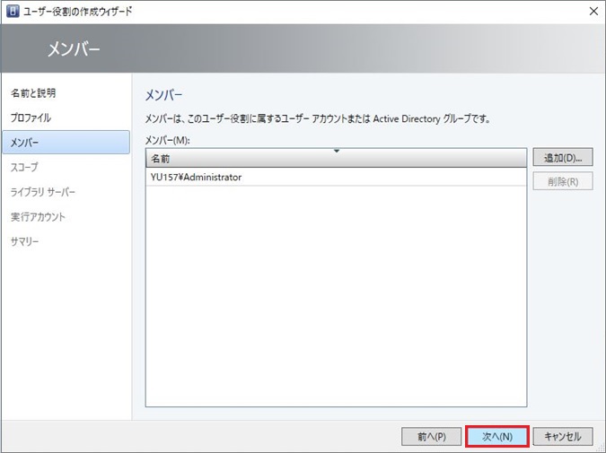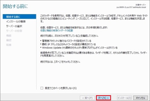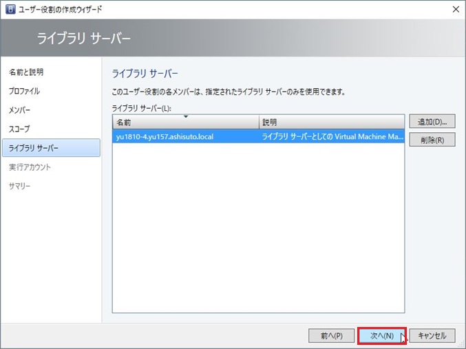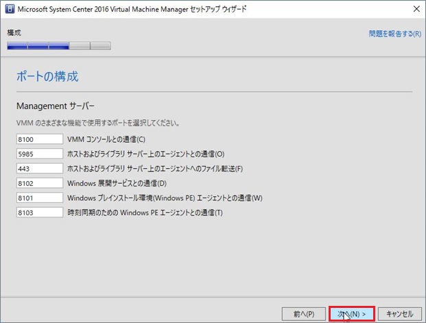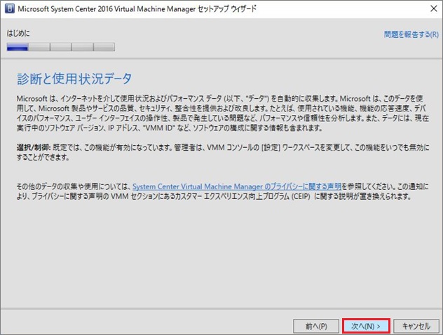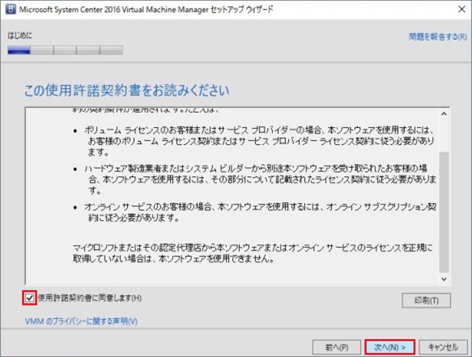 SCVMM2016のシステム要件をみたいしていない場合、[次へ]進めない場合があります。その場合はSCVMM2016のシステム要件を満たしているか確認してください。