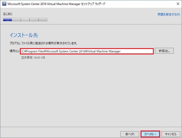 1. SCVMM2016をインストールするパスを指定し、[次へ]進みます。