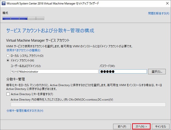 1. 任意のドメインユーザを設定し、[次へ]進みます。
