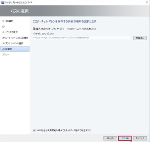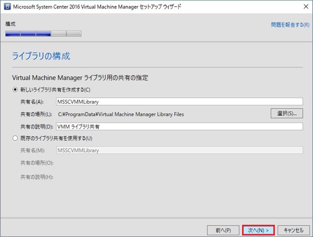 1. VMMライブラリ用の共有の指定を行い、[次へ]進みます。