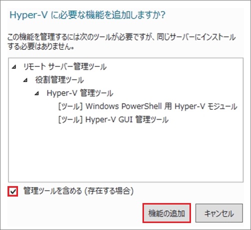 1. 右画面が出ますので、[管理ツールを含める]にチェックを入れて[機能の追加]をクリックします。