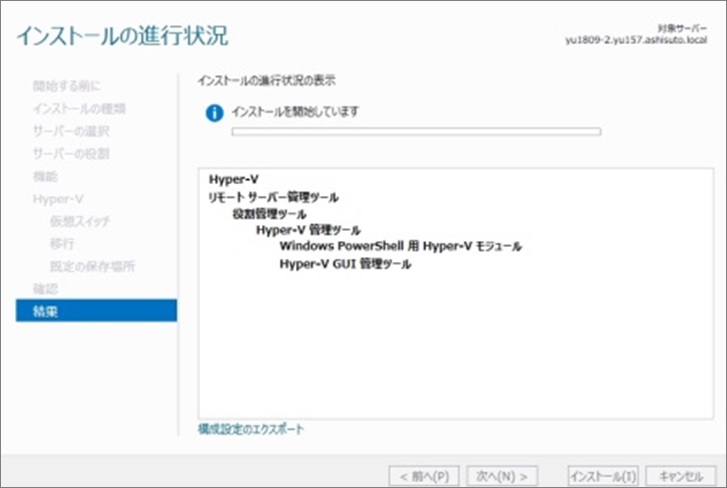 1. インストールが開始されます。エラーなく正常にHyper-Vサーバがインストールされることを確認してください。