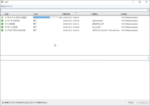 1. 進捗状況等はジョブで確認できます。もしエラー等が発生した場合は、ジョブに記載の通り対処するか、ご不明点はMicrosoft社へお問い合わせください。