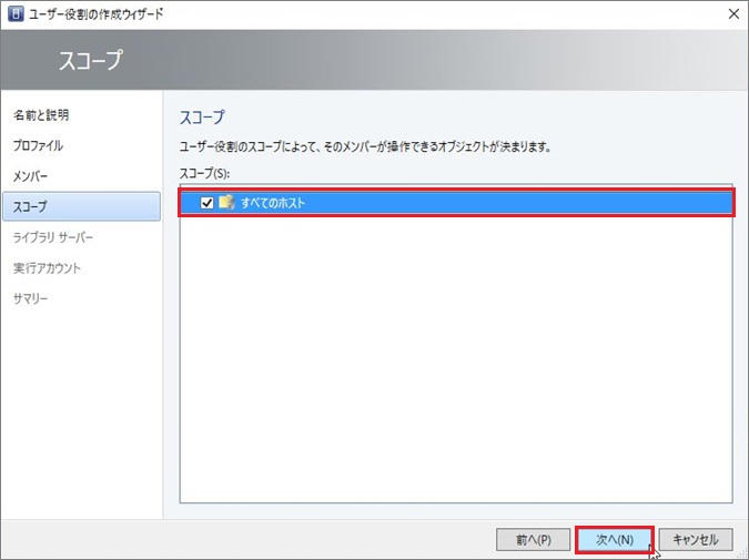 1. [すべてのホスト]にチェックを入れて[次へ]進みます。