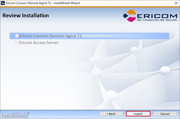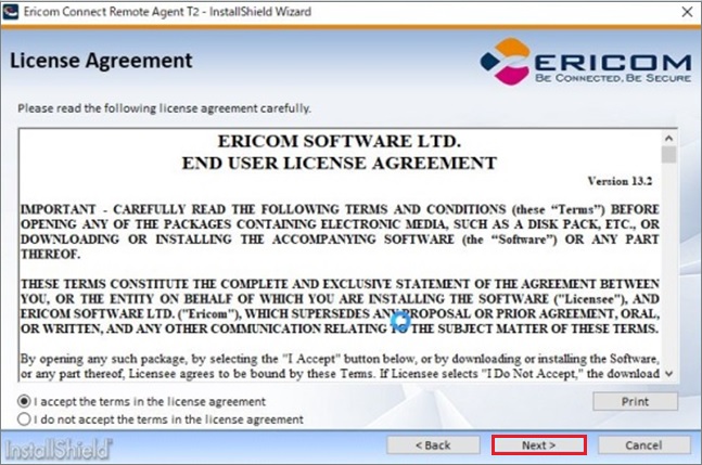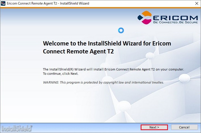 1. RemoteAgent Type2インストールモジュール(EricomConnectRemoteAgentT2_x64.exe)を実行します。