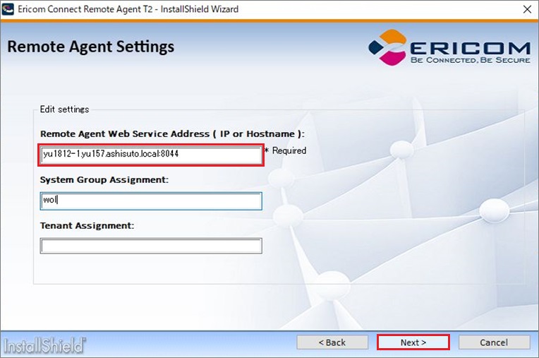 ※推奨はFQDNです。RemoteAgent Type2をインストールするマシンは、必ず名前解決できるよう構成してください。