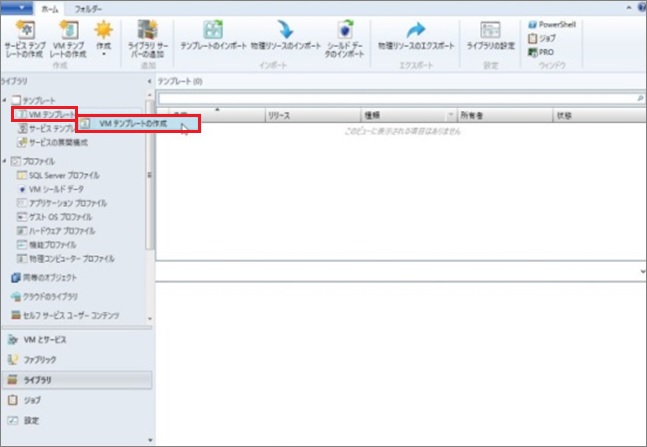 1. 左メニューの[ライブラリ]を選択後、表示されている画面にある[VMテンプレート]を右クリック > [VMMテンプレートの作成]をクリックします。