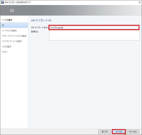 1. [VMテンプレート名]に任意のテンプレート名を入力し、[次へ]進みます。