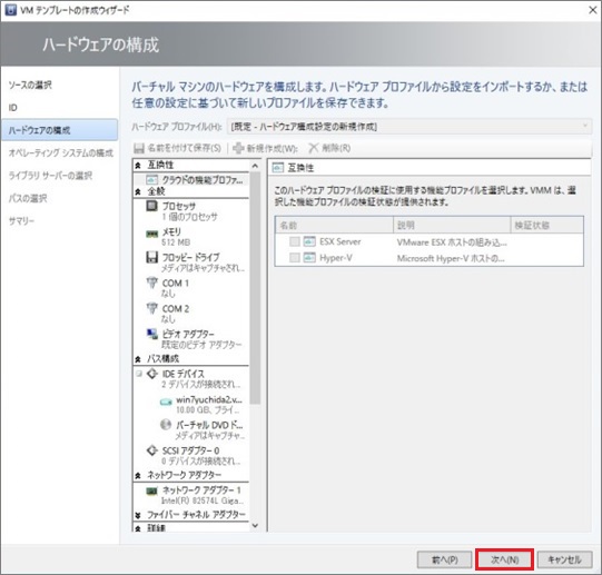1. ハードウェア構成を設定し、[次へ]進みます。