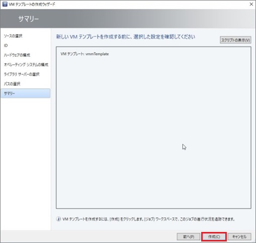 ※VMMテンプレートが作成されます。進捗状況やエラー等はSCVMM2016のジョブ画面を確認ください。もしエラー等が発生し正常にVMMテンプレートが作成できない場合は、Microsoft社へお問い合わせください。