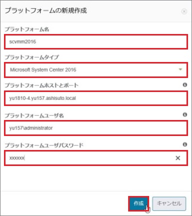 プラットフォームユーザ名:[9.3.2 SCVMM2016インストール] 手順9で設定したアカウント名