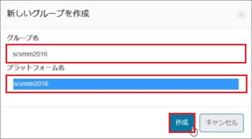 1. グループ名は任意の名前を入力します。プラットフォーム名は事前に作成したプラットフォームを選択し、[作成]をクリックします。