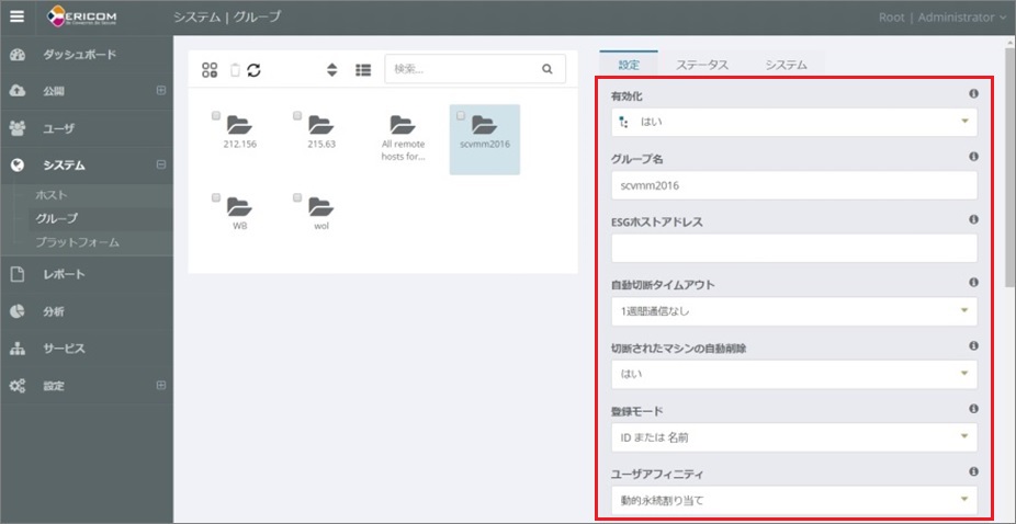 切断されたマシンの自動削除 上記設定によって永久に切断されたマシンをこのシステムグループから自動的に削除するかどうかを設定します。