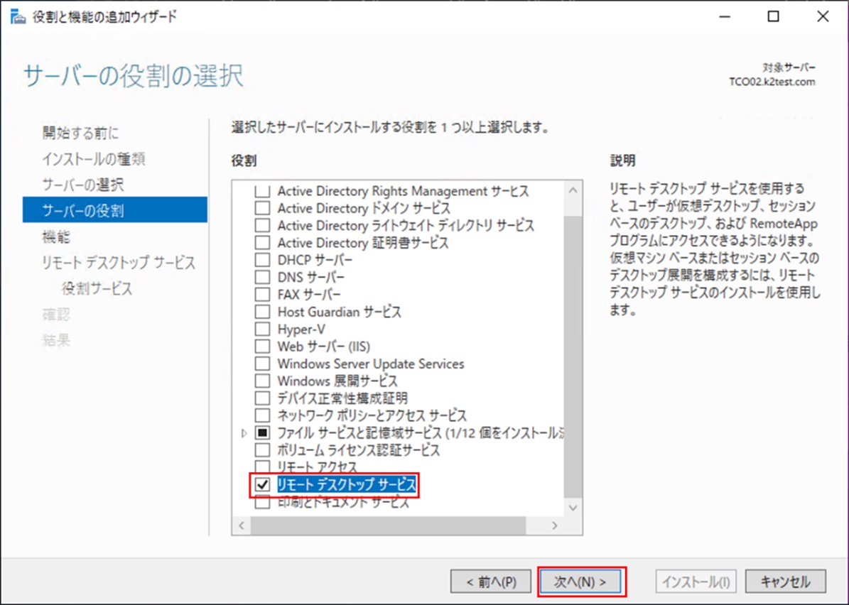 ※ RDSサーバを別立てする場合は、RDSサーバにも本手順を実施してください