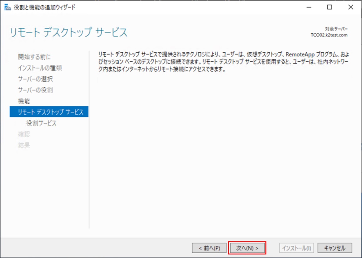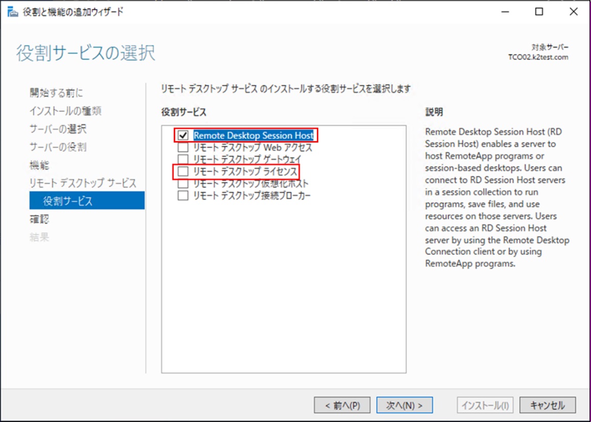 - 本項ではアプリケーション配信に必要なリモートデスクトップセッションホストの役割もConnectサーバに同居させます。また、リモートデスクトップライセンスサーバも同居させる手順となっておりますが、既にライセンスサーバをお持ちであれば、構築の必要はございません。