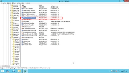 ※ レジストリを直接変更する代わりに、PowerShellを利用することも可能です。PowerShellを利用する手順は、本マニュアル「5.4.2」の「 リモート デスクトップ セッション ホストの設定 」を参照してください。
