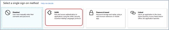 サインオン方法として、「SAML」を選択します。