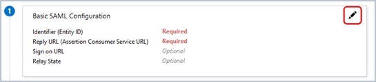「Edit」(編集)(ペンアイコン)をクリックして、基本的な SAML 設定を編集します。