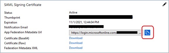 SAML メタデータ: 「Single sign-on」タブで、メタデータの URL を見つけます。
