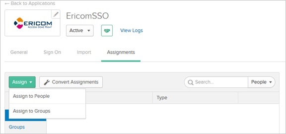 [Assignment](割り当て) タブに移動し、[Assign](割り当て)をクリックし、[Assign to People/Groups](ユーザ/グループに割り当てる) を選択します。