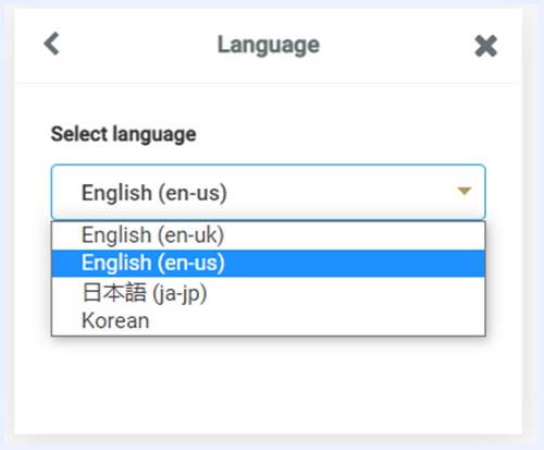 一覧から目的の言語を選択し、システムにログインすると、選択した言語がユーザインターフェースに使用されます。