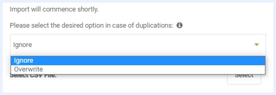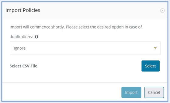 ポールのインポート時に、重複を「無視する」(既存のポリシーは変更されない)か「上書きする」(既存のポリシーをCSVインポートファイルの値で上書きする)かを選択するプロンプトが表示されます。