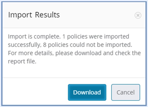 インポート - ローカルCSVファイルから管理コンソールにポリシーを復元します。