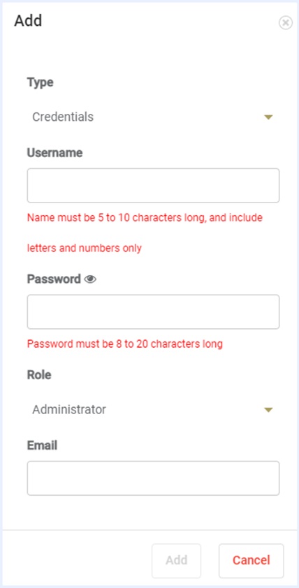 資格情報はテナントの作成時に Shield Service で定義されます。入力は次の形式で行います: