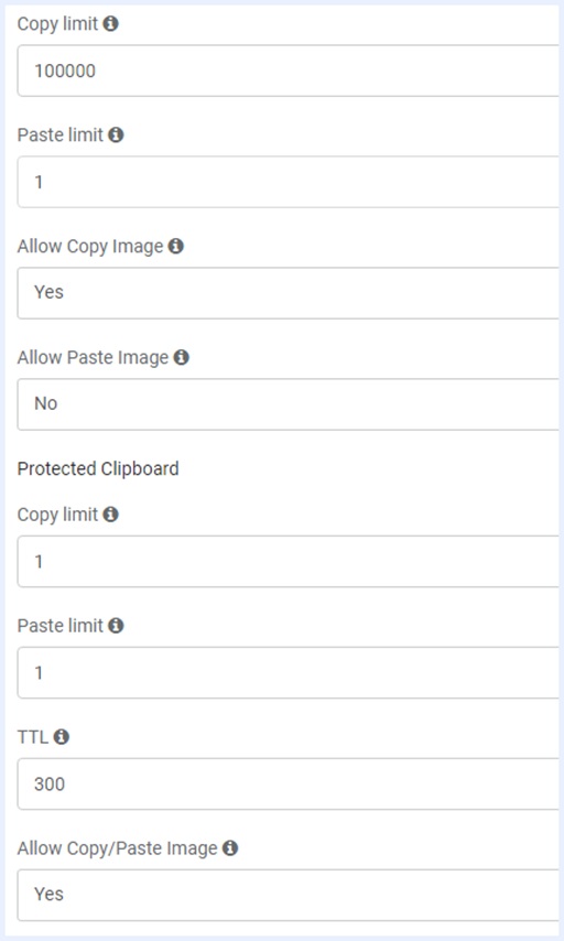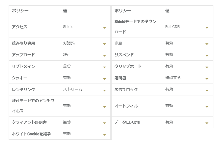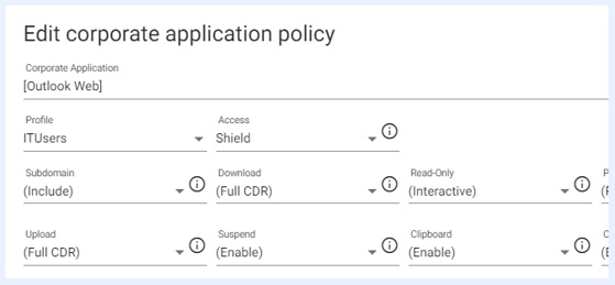 アプリケーションに適したポリシー項目を定義します(例:ダウンロード、アップロード、クリップボード)。