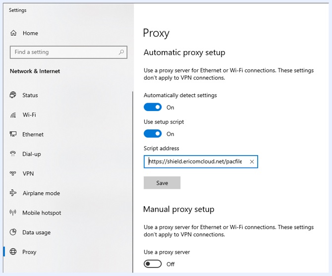 一部のアプリケーションでは、アプリケーション内で Shield プロキシを手動で定義する必要があります。次の手順を実行します: