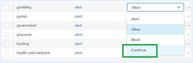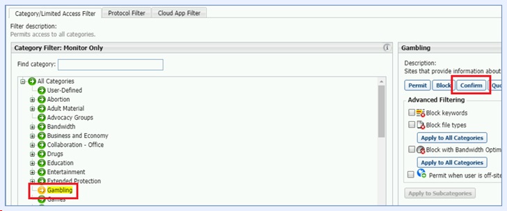 ブラウザ分離を利用する必要があるカテゴリに移動し、「Confirm」(確認)に設定します。