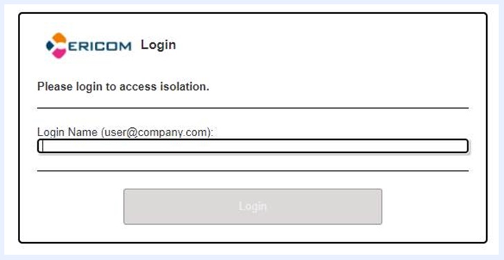 「Isolate」ボタンを選択すると、元の URL が Ericom Shield のブラウザ分離で開きます。