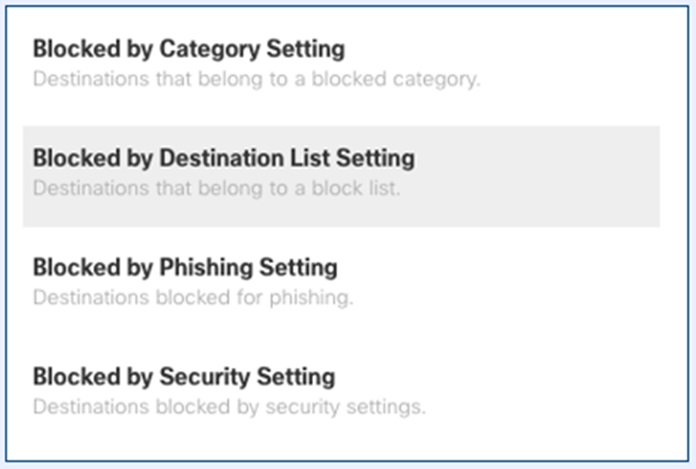 カスタムページを保存すると、使用可能な「Block access」(アクセスのブロック)オプションのリストに表示されます。
