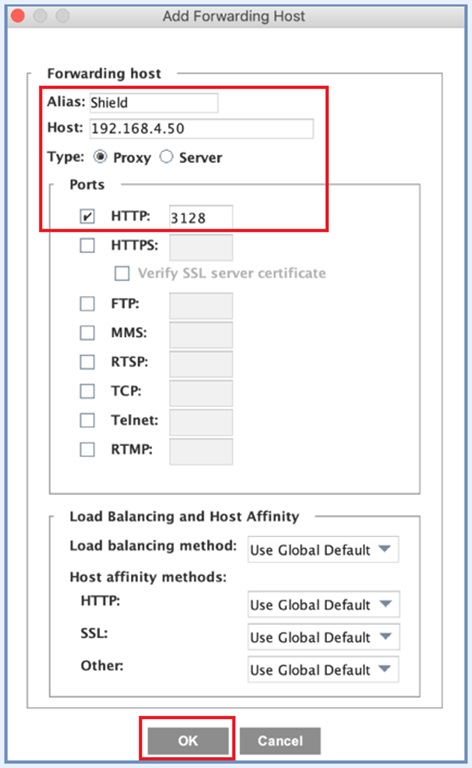 IP アドレスフィールドに Ericom Shield のアドレス <shield.ericomcloud.net> を入力します。