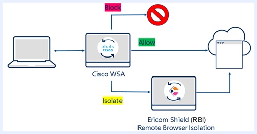 Forcepoint Cloud Security Gateway(CSG)は、Block Page Redirect を介して Web サイトを Ericom Shieldに送信してリモートブラウザで分離するように構成することで、ゼロデイマルウェア保護を提供できます。Forcepoint CSG と Ericom Shield を構成する方法については以下を参照してください。