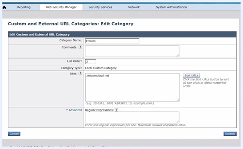 Ericom Browserの分離を使用するために必要なカテゴリを設定します。