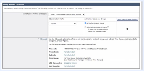 ポリシーのカテゴリに「Ericomで隔離」設定を使用するよう設定する