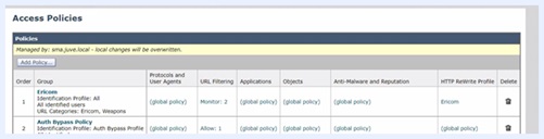 URL管理プロファイルのアクセスコントロールセクションに移動します