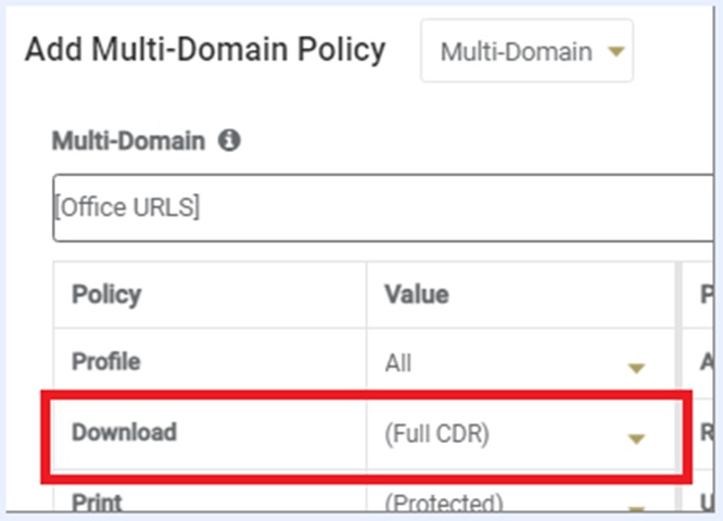 ファイルダウンロードのドメイン (office.net) は Web メール (office365.com) と異なるため、office.net に対して office365.com と同じ設定の別のポリシーを作成する必要があります。 または、すべてのOutlook URLのカスタムドメインリストを作成します。